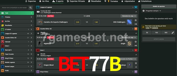 A aposta Bet77B oferece aos jogadores a experiência mais conveniente de apostas em eSports!